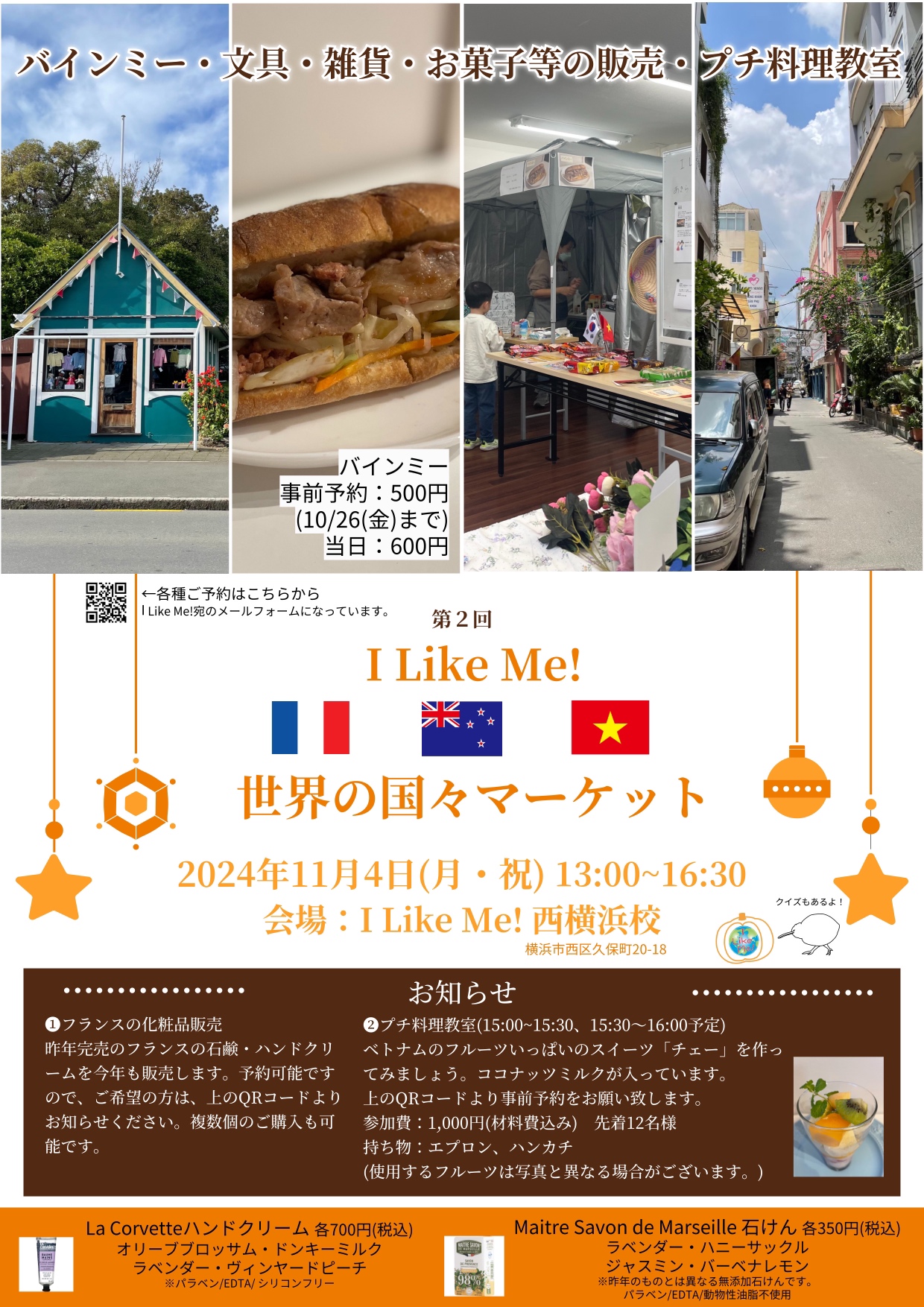 今年も世界の国々マーケットを開催致します♪ (11月4日:月・祝)最新情報 / 2024年10月23日 2024年10月23日 今年も世界の国々マーケットを開催致します♪ 日時:2024年11月4日(月曜日・祝日) 13:00~ 皆様お誘い合わせの上、遊びにいらしてください。